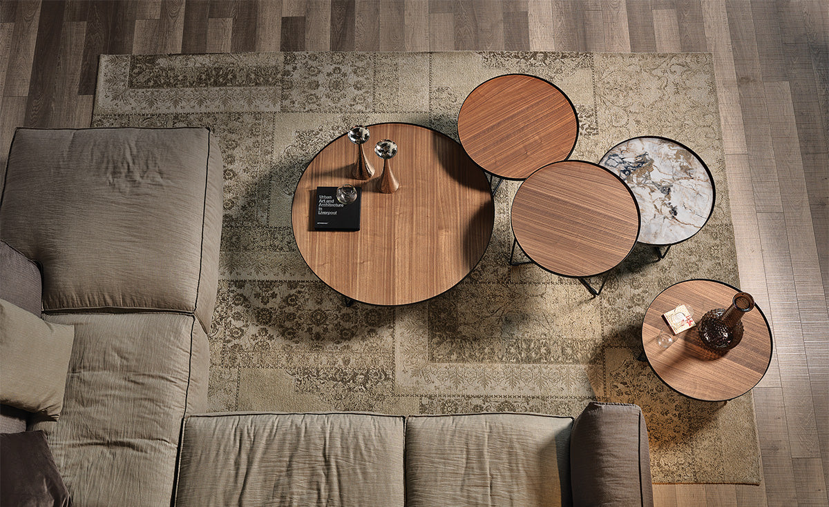 Coffee table with frame in black (GFM73) lacquered steel and top in Canaletto walnut (NC).