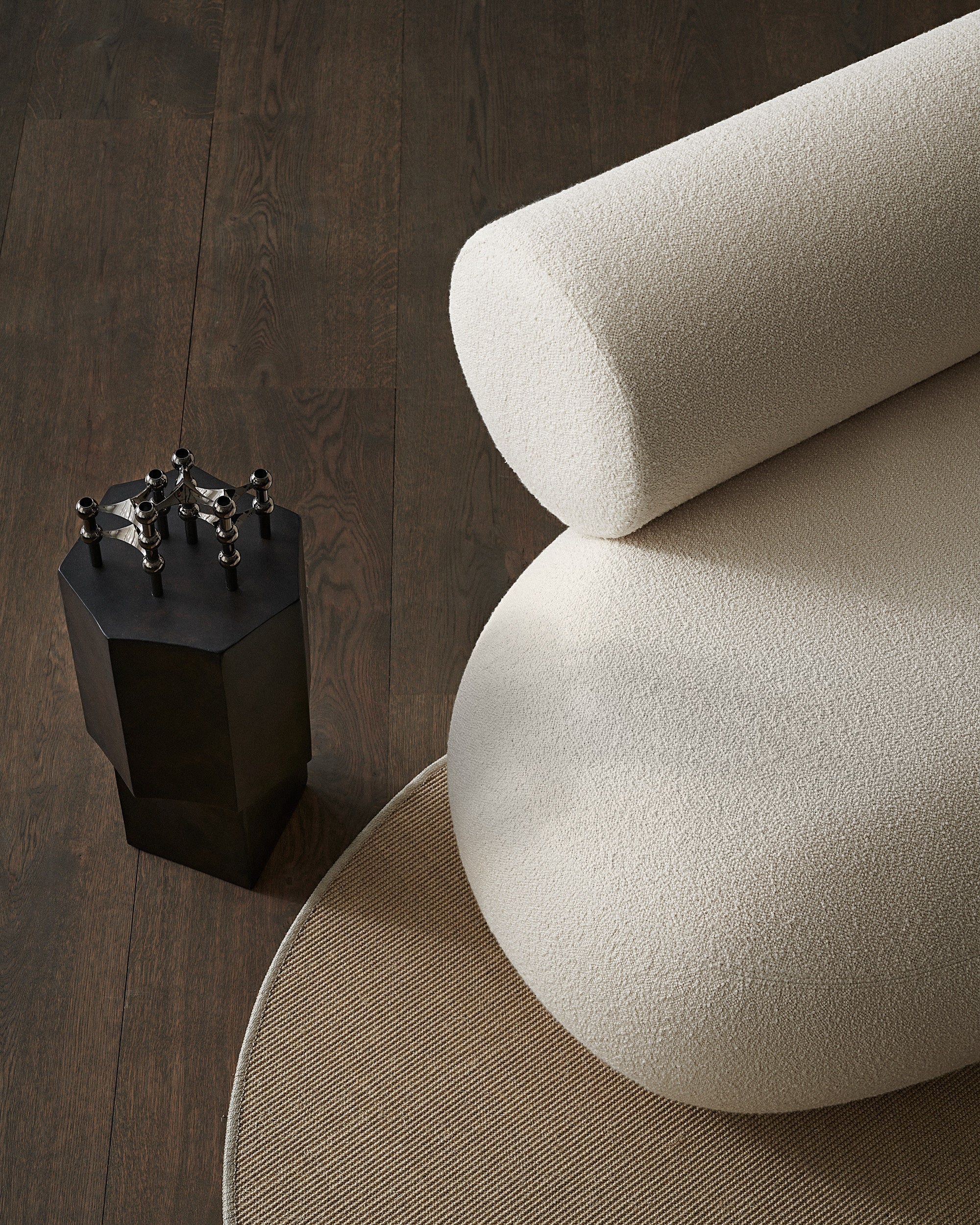Inspired by the natural crystal shape of the quartz stone, Quartz changes its appearance when seen from different angles. Owing to the raw materiality of hand-painted reinforced fiber concrete, the surface of Quartz has a unique and tactile texture.