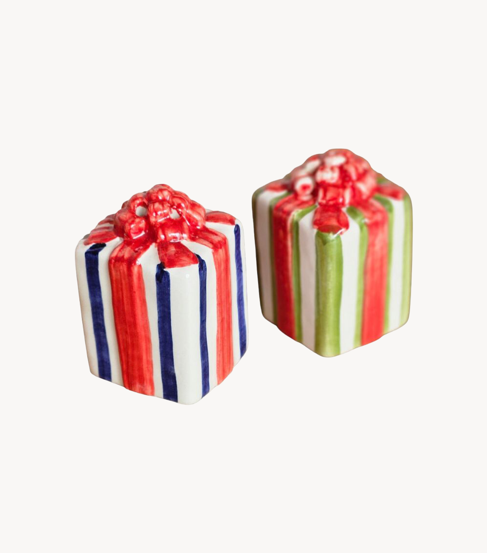 Add a playful touch to your table with these hand-painted ceramic salt and pepper set. Perfect for everyday use or special occasions, they bring character and a touch of playfulness to any mise end place.